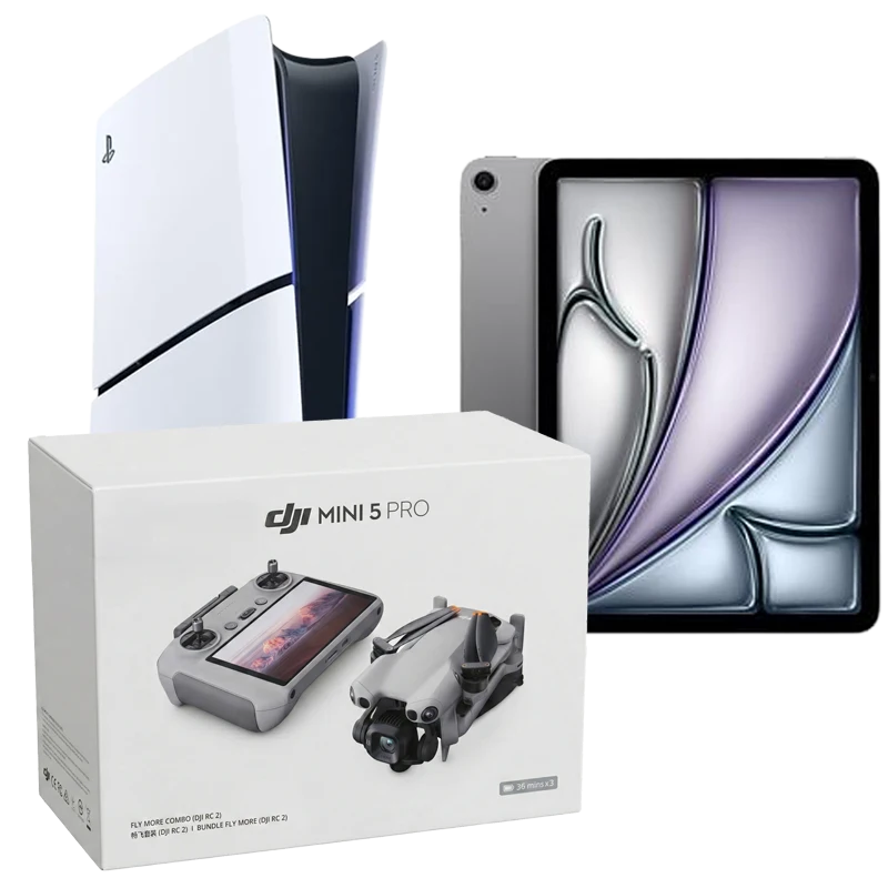1x Sony Playstation 5, 1x DJI Drohne, 1x iPad Air